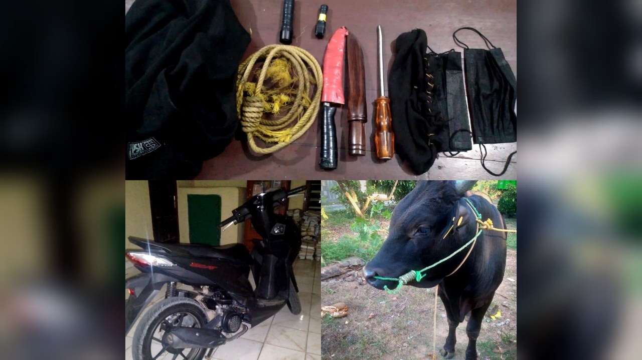 “Dan benar saja, 2 orang itu adalah pelaku pencurian sapi yang kabur, hal itu dibuktikan dengan alat bukti kejahatan yang ada pada keduanya,” ungkapnya.