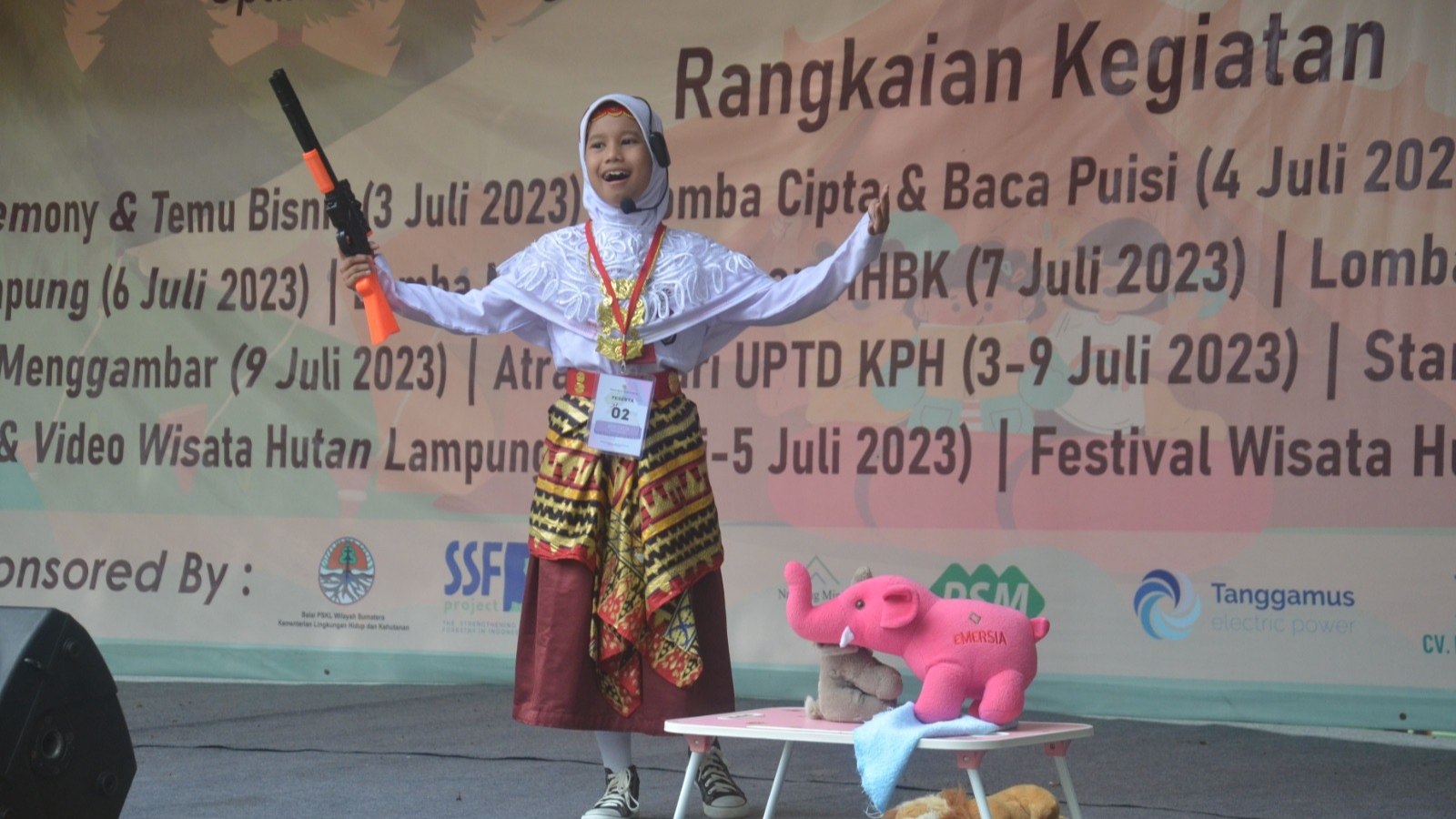 Lappung – Gita Angelina siswi SMPN 1 Sekampung Udik meraih juara di Festival Wisata Hutan Lampung (FWHL) 2023.