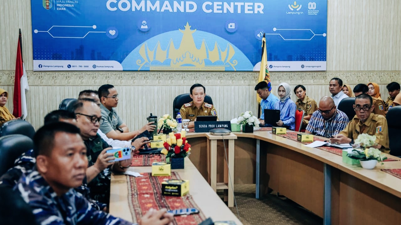 Dari Lampung, rapat ini diikuti oleh Sekretaris Daerah Provinsi Marindo Kurniawan bersama jajaran Forum Komunikasi Pimpinan Daerah (Forkopimda) dari Command Center Dinas Kominfotik.