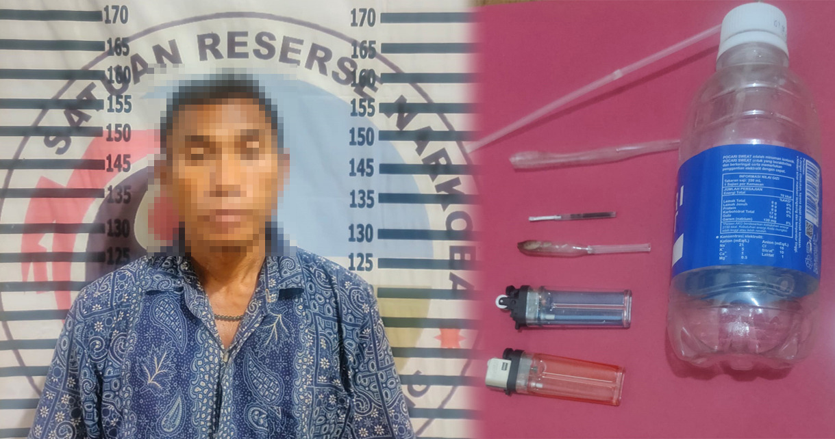 Polisi berhasil menyita barang bukti (BB) berupa alat hisap sabu (bong), pipa kaca (pyrex) bekas pakai, sumbu kompor, dan 2 buah korek api gas.