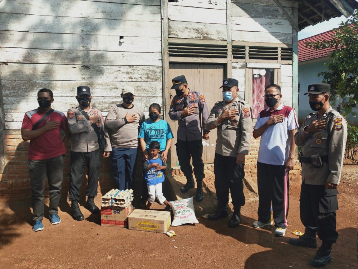 “Laporan Bhabinkamtibmas ada warga bernama Nurhasan mempunyai anak Riskyna Amalia Rosada (10) kondisi lumpuh setelah mengalami kejang-kejang di usia 10 bulan dan anak lainnya Dwi Ramadani umur 10 bulan kondisi sakit liver dan sedang di rawat di rumah sakit. Kami berinisiatif bergerak mengulurkan tangan untuk meringankan sedikit beban hidup mereka dengan memberikan Sembako,” beber Pancarudin.