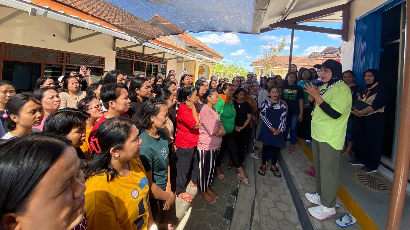 Selain memberikan motivasi, Riana Sari juga turut serta dalam kegiatan senam bersama di Lembaga Pelatihan Kerja (LPK) Utama Mitra Insani, yang diikuti oleh pengurus, calon pekerja, dan warga sekitar.