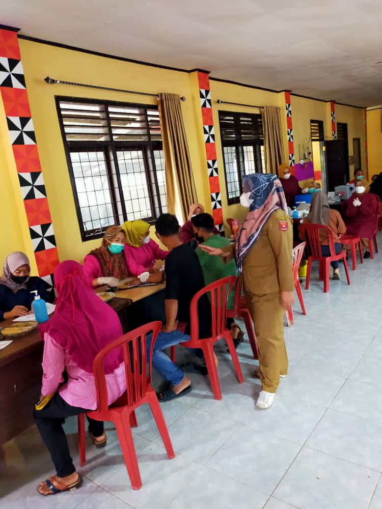 Lappung – Danramil 422-06/Sumber Jaya bekerjasama dengan Pemerintah Kecamatan Way Tenong dan Kelurahan Fajar Bulan Way Tenong Lampung Barat mengelar program vaksinasi Covid 19 bagi masayarakat umum di Kantor Kelurahan Fajar Bulan, Senin 1 November 2021.
